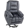 Make your life easier with this electric TV chair with stand-up aid from Rootz. If you or your family have mobility issues, this electric riser recliner is a practical choice. With just the push of a button, you can effortlessly switch from upright to reclined position. Sit back, relax and let the Rootz relaxation chair work for you.Safe and Gentle LiftingExperience safe and gentle lifting to an almost upright position, making it easier for seniors to stand up without strain. Perfect for those with mobility issues.Comfortable RecliningLean back into a comfortable sleeping position (up to 135°) with a footrest. Enjoy a relaxing experience that supports your back, lumbar, thighs, and legs.Eight Vibrating Massage PointsThe chair features eight vibrating massage points targeting zones on the back, lumbar, thighs, and legs. Choose from four types of massage and enjoy heating in the lumbar area.Elegant and Soft FabricThe velvet-like fabric of the TV chair offers a soft touch and an elegant appearance. The pocket spring core system ensures a more elastic and springy seating experience.- Color: Gray