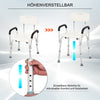 This shower seat with armrest and backrest from Rootz is a practical helper for people with physical disabilities who want to feel safer while sitting in the shower. The seat height can be individually adjusted between 39-51.5 cm. The armrests help with support and standing up. Thanks to the rubber capsules on the feet, the shower chair offers a secure hold on almost any surface. The bath chair is made of powder-coated aluminum and hygienic HDPE plastic.