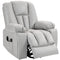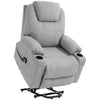 Discover the Rootz TV armchair, your comfortable companion for incomparable relaxation. The chair gently raises 45°, bringing you into an almost upright position - ideal for the elderly or anyone looking to relax. The cinema chair can be adjusted up to 135° so that you can find your favorite position at the push of a button. Treat yourself to a personal massage with eight vibrating points and soothing heat in the lumbar area.Effortless Stand-Up Assistance: The 45° stroke of the TV chair makes it easier to get up, ideal for older or injured people. Enjoy independence and comfort with this thoughtful feature.Customizable Recline: Lean back into a comfortable sleeping position (up to 135°) with footrest. Find your favorite position effortlessly with easy electrical adjustment.Full-Body Massage: Eight-point vibration massage for back, lumbar spine, thighs, and legs with four massage programs. Lumbar heating adds an extra layer of relaxation.Convenient Features: Side pockets and drink holders on the recliner provide space for personal items. Keep everything you need within arm's reach.- Color: Light gray