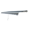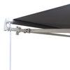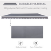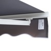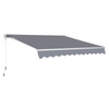The high-quality folding arm awning from Rootz is the ideal sun and rain protection for your patio or balcony. The frame is made of powder-coated aluminum. It effortlessly defies the weather, is valuable, and is pleasantly light. The polyester fabric of the awning fabric is particularly heavy and also has a waterproof PU coating. This makes it dirt-repellent and weather-resistant. Depending on your needs, you can mount your sun awning on the wall. The angle of inclination can be infinitely adjusted - so you always sit in the shade. You can easily retract and extend your folding arm awning with the hand crank. The scope of delivery also includes two brackets and fastening screws.