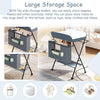 Convenient Storage SolutionsEquipped with a side storage basket, a hanging rail, and a spacious lower storage area, this changing table keeps diapers, towels, and baby essentials organized and within easy reach.