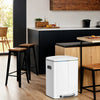 Introducing the Rootz 2 x 20 l garbage separation system, featuring two compartments for easy waste sorting. Built with reinforced steel and a chic white finish, this durable trash can offers a hygienic touch-free operation with its pedal design, ensuring safety for pets and children alike. Perfect for environmentally-conscious households aiming to simplify recycling and waste disposal without compromising on style.