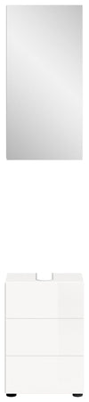Elevate your bathroom with the Rootz Bathroom Furniture Set in White, designed for both style and functionality. This 2-piece set includes a narrow sink base cabinet and a mirror cabinet, offering a sleek and modern look. The high-gloss deep-drawn body combined with white melamine adds a touch of elegance to your space.
