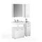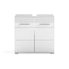 The high-quality LINUS bathroom furniture is timeless and easy to care for. This set with a white high-gloss front and partial grooved look projects a purist and modern image, making it a stylish addition to your bathroom. The set includes a sink base cabinet and a mirror cabinet, providing both functionality and elegance in your space.