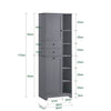 This tall cabinet with door and drawer is ideal for storing bathroom accessories like cleaning products or toilet paper. It features six open shelves for easy access to bathroom utensils.