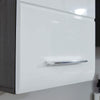 Introducing the modern and sleek Rootz Badezimmer Hängeschrank Wandschrank Skin, meticulously designed for contemporary homes. Crafted with precision, this wall cabinet boasts a high-gloss white front and a Sardegna smoked silver body, making it a stylish addition to any bathroom setting.