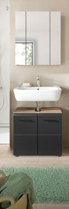 The Rootz Bathroom Combination is the perfect solution for stylish and functional bathroom setups. Featuring a black and brown imitation design, it combines a mirror cabinet and a vanity unit in a compact 2-piece set. This bathroom combination is ideal for small spaces, offering easy assembly, high-quality MDF fronts with groove milling, and easy-care surfaces for effortless maintenance.