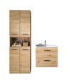 This elegant bathroom combination offers the perfect blend of style and utility. Its spacious design includes a wide tall cabinet, a vanity unit with a sink, and a mirror cabinet, all in a stunning Brown. Ideal for modern interiors, it features high-quality MDF fronts with groove milling for easy cleaning and maintenance. The dimensions (135x185x46 cm) ensure ample storage space without compromising on aesthetic appeal.