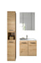 Experience the perfect blend of style and practicality with this four-piece bathroom combination. Featuring a contemporary brown finish, it includes a tall cabinet, a vanity unit with an integrated sink, and a mirror cabinet. Designed for easy assembly and maintenance with high-quality MDF fronts, this set ensures durability. Transform your bathroom into a sleek and organized space with these beautifully crafted pieces.
