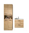 The Rootz bathroom combination offers a sophisticated solution perfect for modern interiors. It features a natural Brown that effortlessly blends with contemporary styles. This four-piece set includes a wide tall cabinet, vanity unit with sink, and a mirror cabinet, all crafted with high-quality MDF fronts and easy-care surfaces. The combination is both stylish and functional, designed to maximize storage and elevate your bathroom's aesthetics.