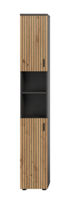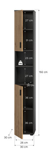 Enhance your bathroom with The Rootz bathroom cabinet in Grey and Brown imitation. This sleek, 30x192x30 cm unit features reversible door hinges and adjustable shelves, maximizing storage with style. The durable, easy-care front in a milled panel look provides a modern touch. Save space with multiple compartments while enjoying easy maintenance, ensuring your bathroom remains clutter-free and elegant.