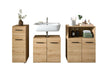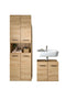 This comprehensive bathroom combination set offers both elegance and practicality with its beautiful brown finish. Comprising a wide standing cabinet, a compact standing cabinet, a mirror cabinet, and a vanity unit, it meets all your storage needs. Easy to assemble, it features high-quality MDF fronts with groove milling. Its easy-care surfaces ensure that your bathroom remains stylish and clean with minimal effort.