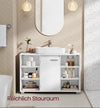 The Rootz White Sink Unit is a stylish and functional addition to any bathroom. Crafted from high-quality wooden chipboard and MDF, this unit offers durability and a sleek design. With dimensions of 30 x 90 x 60 cm, it fits perfectly under most sinks, optimizing space. Its cloud white finish adds a modern touch, making it perfect for contemporary homes.