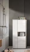 This stunning freestanding cabinet is the epitome of modern elegance for your bathroom. With dimensions of 60x133x34 cm, it offers ample storage space with three doors and an open compartment, perfect for organizing towels and toiletries. The white high gloss deep-drawn finish adds a touch of sophistication and integrates effortlessly into any bathroom decor, enhancing the overall aesthetics while ensuring easy maintenance and longevity.