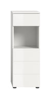 This elegant freestanding cabinet, measuring 38x106x34 cm, enhances your bathroom with a modern touch. Featuring a glossy white finish, it includes a door, a drawer with full extension, and an open compartment for versatile storage options. The sleek, handleless design complements its easy-care surface, making it both functional and effortlessly stylish. Perfect for small spaces, this cabinet adds a refined aesthetic to any bathroom.