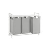 Introducing the Rootz Laundry Basket, designed for efficient laundry sorting with three spacious compartments. Made from durable oxford tissue and equipped with a sturdy MDF frame, this basket makes laundry day effortless. Its chic grey white finish blends seamlessly with any décor, while its 92.5 x 33 x 72 cm size ensures ample storage for your clothes.