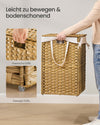 Organize your laundry with the Rootz Large Washing Basket in brown colors. Crafted with PP plastic rattan and a sturdy metal frame, this stylish basket blends seamlessly into any decor. It offers ample space, ensuring convenience and efficiency on laundry day. The inner sack made of polyester cotton fabric is easy to maintain, enhancing durability. Perfect for modern households seeking practicality and style.