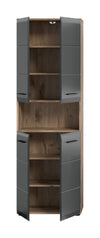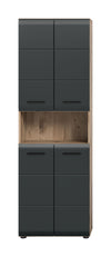 The wide tall cabinet expertly combines functionality with style, perfect for enhancing your bathroom's elegance. Featuring a stunning black and brown finish, it offers generous storage with four adjustable shelves, two fixed ones, and versatile compartments. This modern furniture seamlessly fits into any contemporary décor while offering practical storage solutions.