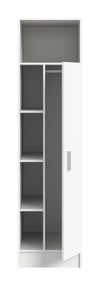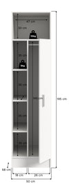 This universal cabinet, in a chic white imitation finish, offers outstanding versatility and storage. Its dimensions of 50x195x62 cm allow for seamless integration in various spaces, accommodating any room with ease. Designed with adaptability in mind, it can be mounted both right and left. Quick installation is paired with an easy-care surface, making this wardrobe a practical choice for contemporary living.