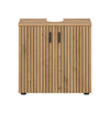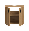The vanity unit in Brown imitation is designed for those who seek both style and functionality in their bathroom. Measuring 60x59x30 cm, it features two doors, a height-adjustable shelf, and two compartments for ample storage space. The easy-care, high-quality front with a milled panel look offers a warm, natural atmosphere. The versatility of the unit allows for diverse combination options, making it a perfect fit for any modern bathroom.