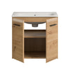 This elegant vanity unit, featuring a ceramic sink in Brown, is designed to enhance your bathroom space. The unit includes two doors and a removable, height-adjustable shelf providing ample storage. Crafted from high-quality MDF with groove milling, it offers Scandinavian elegance. Easy to assemble, it includes instructions for hassle-free setup, making it both stylish and convenient for everyday use.