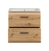 The Rootz Vanity Unit in Brown is an elegant addition to any bathroom. Featuring a ceramic insert sink and two spacious drawers, it combines practicality with sophisticated design. The high-quality MDF front with groove milling offers a chic, rustic aesthetic while ensuring durability. Easy to assemble and maintain, this vanity unit provides ample storage while enhancing your bathroom's natural charm.