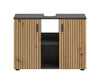 This dynamic washbasin base cabinet in Grey and Brown imitation measures 80 x 59 x 30 cm, providing ample storage with 2 doors and adjustable shelves. The elegant milled panel fronts are not only stylish but also easy to maintain. Designed for modern bathrooms, it offers practical features like a siphon cutout and a back panel recess for seamless integration.
