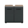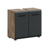 Enhance your bathroom's style with The Rootz Washbasin Base Cabinet. Its matte black finish blends seamlessly with the Nox Oak's natural aesthetic. Featuring grooved MDF fronts, it offers elegance and durability. Two strategically designed doors with a siphon cutout maximize storage under your sink. This compact unit is simple to assemble with low-maintenance surfaces perfect for modern living.