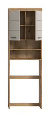 This stylish washing machine cabinet in brown and white imitation matte measures 63 x 191 x 24 cm, integrating smoothly into any laundry space. With durable MDF fronts and milled grooves, it offers two open compartments and four closed ones, providing ample storage for household items. Its robust build ensures long-lasting stability, while its modern aesthetics elevate the look of your laundry room.