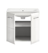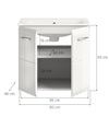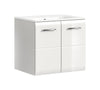 Upgrade your bathroom with The Rootz Washbasin Set, featuring a sleek high-gloss finish and ample storage space. The unit includes a ceramic sink, two doors, and an adjustable shelf, perfect for keeping bathroom essentials organized. The modern MDF front with groove milling adds a touch of elegance, making it an ideal addition to any bathroom decor.