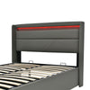 The Rootz double bed with hydraulic storage and LED strips combines modern design with advanced functionality. Available in White or Gray PU, it offers a large storage space accessible through a hydraulic mechanism. The integrated LED strip in the headboard, controlled via remote, provides customizable colors and intensities for the perfect ambiance.