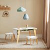 This Rootz Kids Activity Table Set with 2 Stools is designed to foster creativity and learning in children. After engaging in various activities, kids can easily organize their space by storing books and art supplies in the convenient compartments below the table.