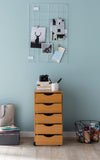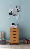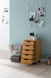 A sleek and versatile storage solution that combines modern design with functionality, featuring five spacious drawers with easy access, smooth-rolling casters for mobility, and sturdy MDF construction with a durable melamine resin coating for added protection.