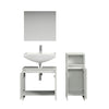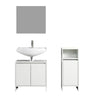 Optimized for Compact Spaces: Perfectly curated for smaller bathrooms, this set provides ample storage space without consuming much room, ensuring a clutter-free environment.Comprehensive 3-Piece Set: Comprising of a sink cabinet, wall mirror, and an additional small bathroom cabinet, this ensemble ensures every bathroom need is met.