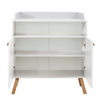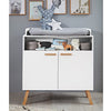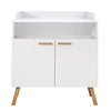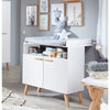Introducing the Rootz changing table, a seamless blend of style and functionality. Crafted in a neutral white shade, this modern, easy-to-maintain changing table is designed to perfectly complement your nursery's decor. It features two doors, an open compartment, a shelf, and a generous changing area to facilitate hassle-free diaper changes while maximizing storage options. Made from white melamine, the table radiates a contemporary yet timeless appeal.