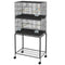 Offer your bird a pleasant place to play and rest with the Rootz playground for birds with wheels. Easily move between indoor and outdoor areas with 4 wheels (two with brakes). Includes 2 stainless steel bowls, 3 perches, 1 ladder, and hanging rings for toys.
