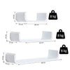 Versatile Installation: The versatile floating shelves can be installed anywhere for display and storage, making them perfect for any room in your home.Trendy Design: Shelves in a trendy design in 3 sizes add a modern touch to your decor, enhancing the aesthetic appeal of your space.Durable Material: Made of MDF board, each shelf has a load capacity of 8kg, ensuring they can hold your items securely.Easy Assembly: The mounting material is included in delivery, and the shelves can be mounted in either direction, making installation a breeze.- Color: White