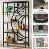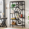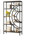 The Rootz Unique Half-Moon Bookcase features a one-of-a-kind design with 2 half-moon silhouettes that form an aesthetic circular pattern when two units are combined. Suitable for versatile usage with 8 varying-sized shelves, it offers limitless storage possibilities for displaying collections, plants, organizing books, or documents. Crafted with E1 level wood and rust-free metal, it guarantees a sturdy structure capable of bearing up to 20 lbs per shelf. The free-standing design and open shelves make storage and organizing a breeze. For efficient assembly, illustrated instructions and labeled pieces are included.