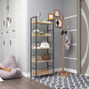 Enhance your living space with this modern standing shelf featuring a sturdy metal frame and wood panel with a white enamel finish.