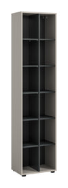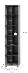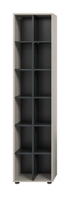 The white -effect storage shelf boasts a spacious design with ten shelves and twelve open compartments, perfect for organizing home accessories, books, and decorations. Its modern style with easy-care surfaces enhances any room, offering both order and elegance. The trendy color scheme adds a stylish touch to your living space, making it a must-have versatile furniture piece.