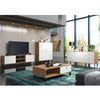 Enhance your decor with the Rootz Living Room Sideboard, offering spacious compartments, doors, shelves, and drawers for effortless storage. The artisan oak body and sleek matt white front with textured details create an alluring visual contrast that complements any interior.