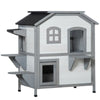 LARGE TWO-TIER CAT BOX: The wooden cat house offers two levels of sheltered comfort and fun for your furry friends. Offer your kitty a complete play zone on two floors