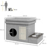 - Cat house with raised feeding area contains 2 stainless steel bowls