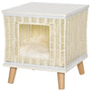 CONTEMPORARY DESIGN: The creamy white rattan, white countertop and pine wood legs make this cat house modern and elegant. It goes with all your furniture.