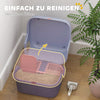 Discover the stylish and practical Rootz cat litter box with lid. The semi-open structure with sand waste hole retains dirt while allowing your cat to get in and out comfortably. The lockable lid of the litter box can be opened for cleaning and offers the spacious, covered litter box even more space for cats weighing up to 3.5 kg. A smart design for comfort and cleanliness!
