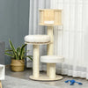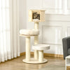 SCRATCHING AND RESTING CENTRE: Equipped with three scratching posts, two comfortable lounging platforms and a spacious elevated house, this tiered cat tree offers cats numerous opportunities for claw sharpening, lounging and resting.