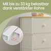 The Rootz Chest of Drawers is a chic and functional storage solution featuring six fabric drawers, crafted from durable wooden chipboard and steel. With a stunning wood-colored cream white finish, this versatile unit is perfect for organizing clothes, toys, or miscellaneous items in any room. Its compact dimensions and stylish design make it ideal for maximizing both space and aesthetic appeal.