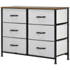Home storage with this Rootz fabric chest of drawers. The six fabric drawers offer room for lots of things - keep t-shirts, tops, bottoms and more organised. The large space also makes it suitable for shared use. The wood-effect top offers more room: a great place to display your favourite photos. The steel frame makes a strong core, with adjustable feet for balance. Comes with anti-tipping straps for safety. Use all over the home and office.