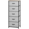 This stylish Rootz chest of drawers features five removable fabric drawers, providing versatile storage perfect for your bedroom, living room, or hallway. Crafted from a robust steel and MDF structure, it offers both durability and elegance. The adjustable foot caps ensure stability on uneven surfaces, while the upper worktop is ideal for showcasing your favorite decor pieces.