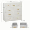 Enhance your living space with The Rootz Fabric Dressing, featuring a stunning combination of elegance and functionality. With nine spacious Sherpa drawers and stylish gold handles, this white dresser fits seamlessly into any decor. Its steel frames promise durability, while adjustable footpads ensure stability. Perfect for the living room, bedroom, or hallway, this piece offers versatile storage solutions for a clutter-free space.